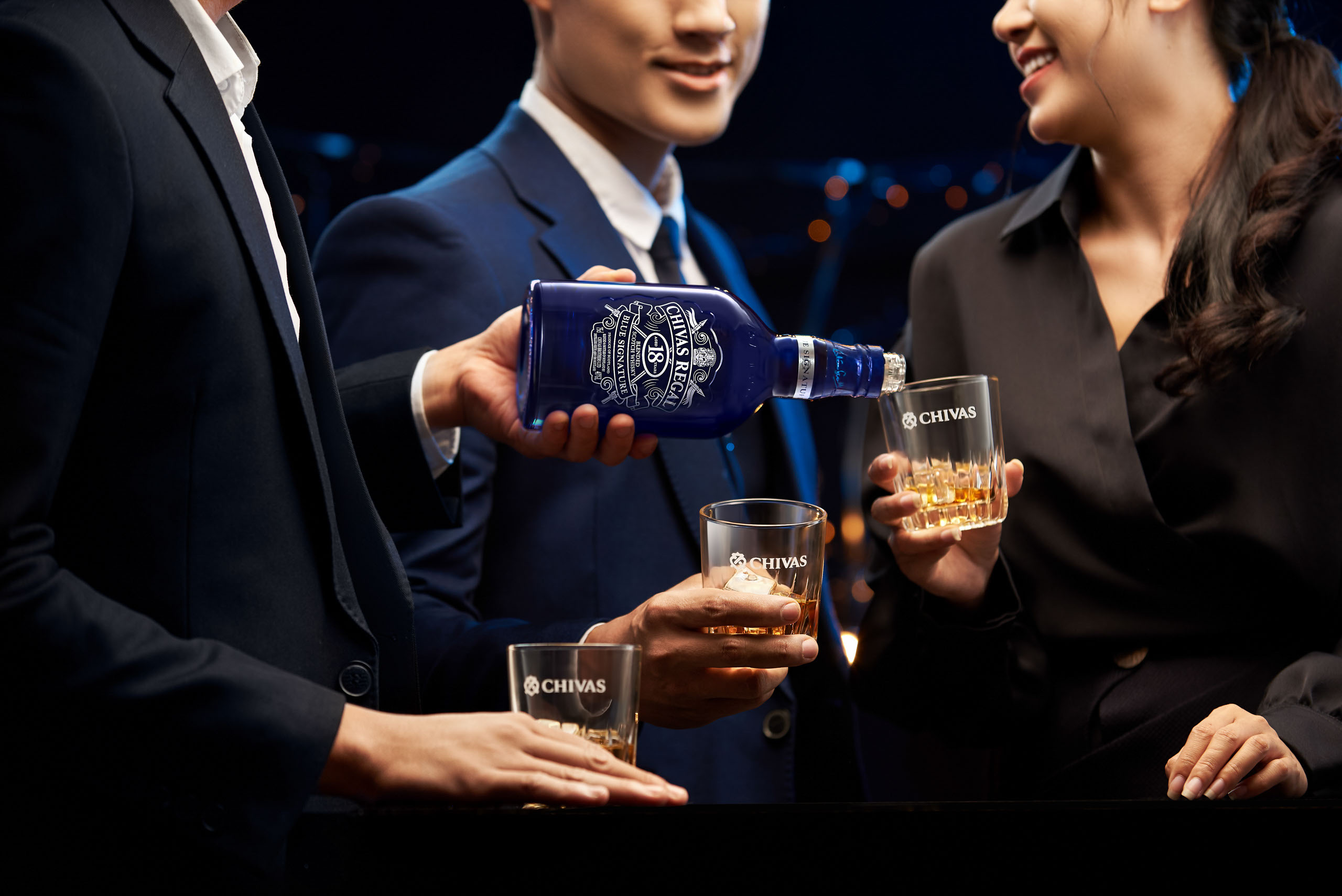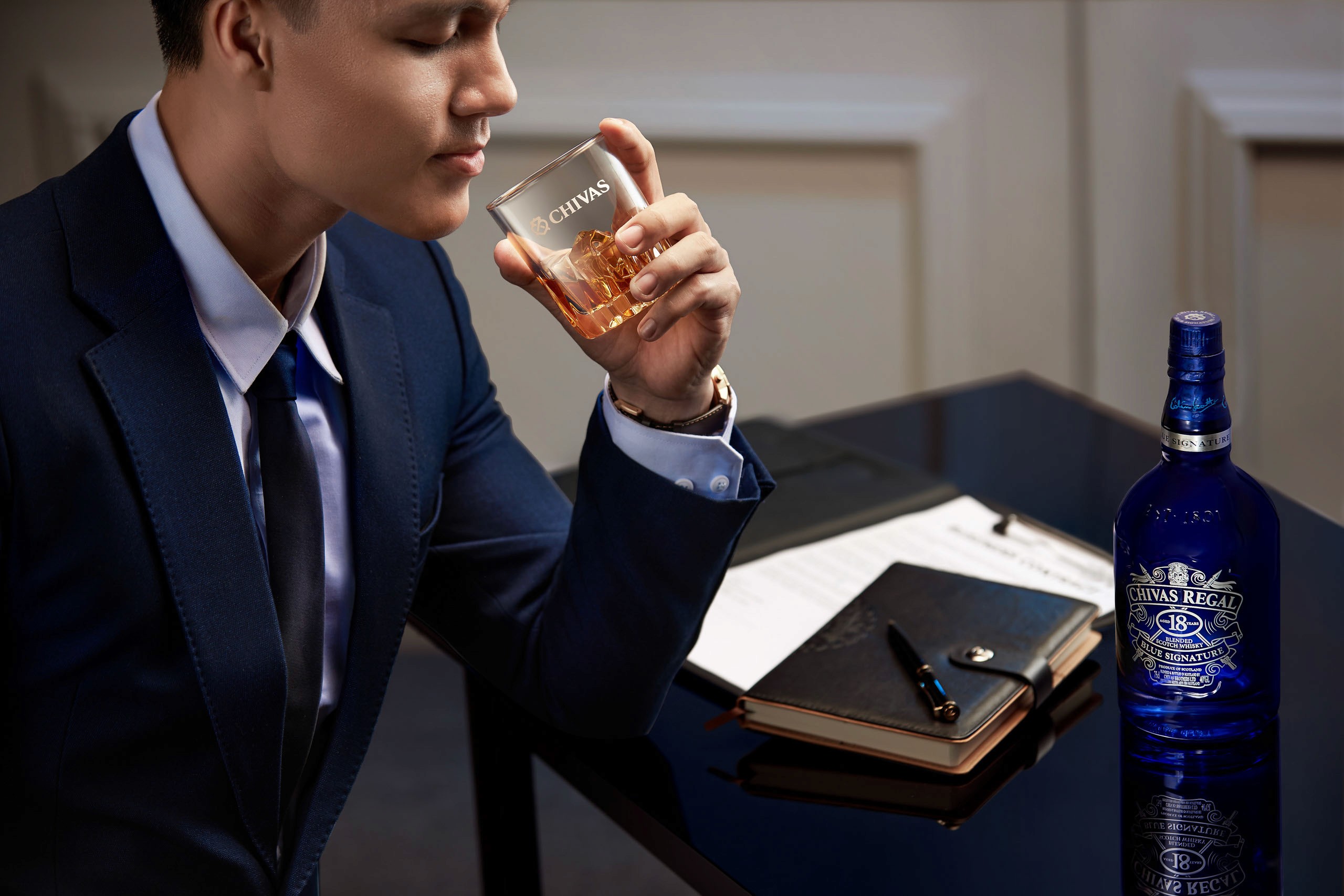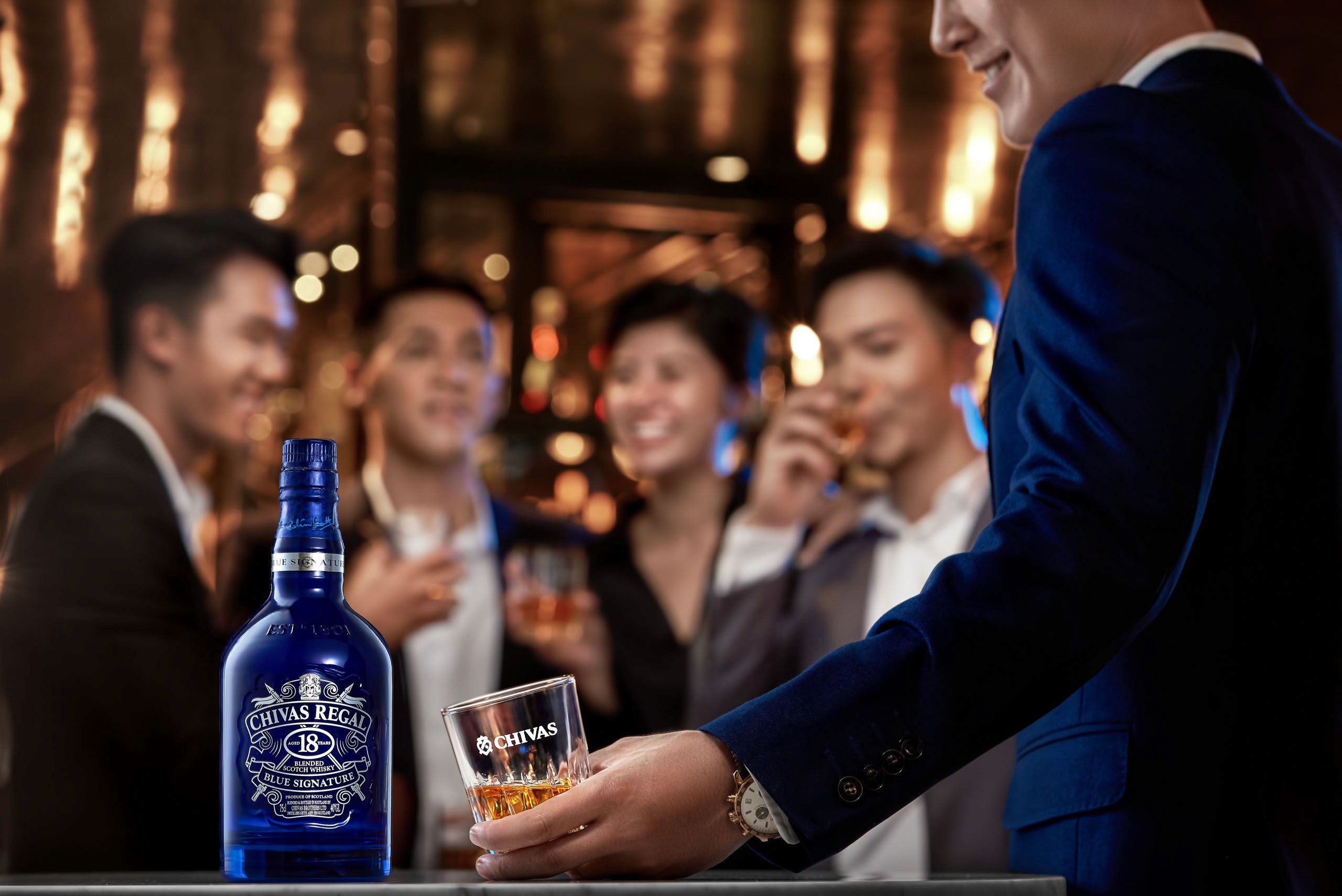 Chivas Regal 18 Blue Signature is the blended scotch whisky created uniquely in honour of Vietnam whisky drinkers. CR18 Blue Signature branded its image to be the whisky of business and success, hence for the blue packaging representing hope.