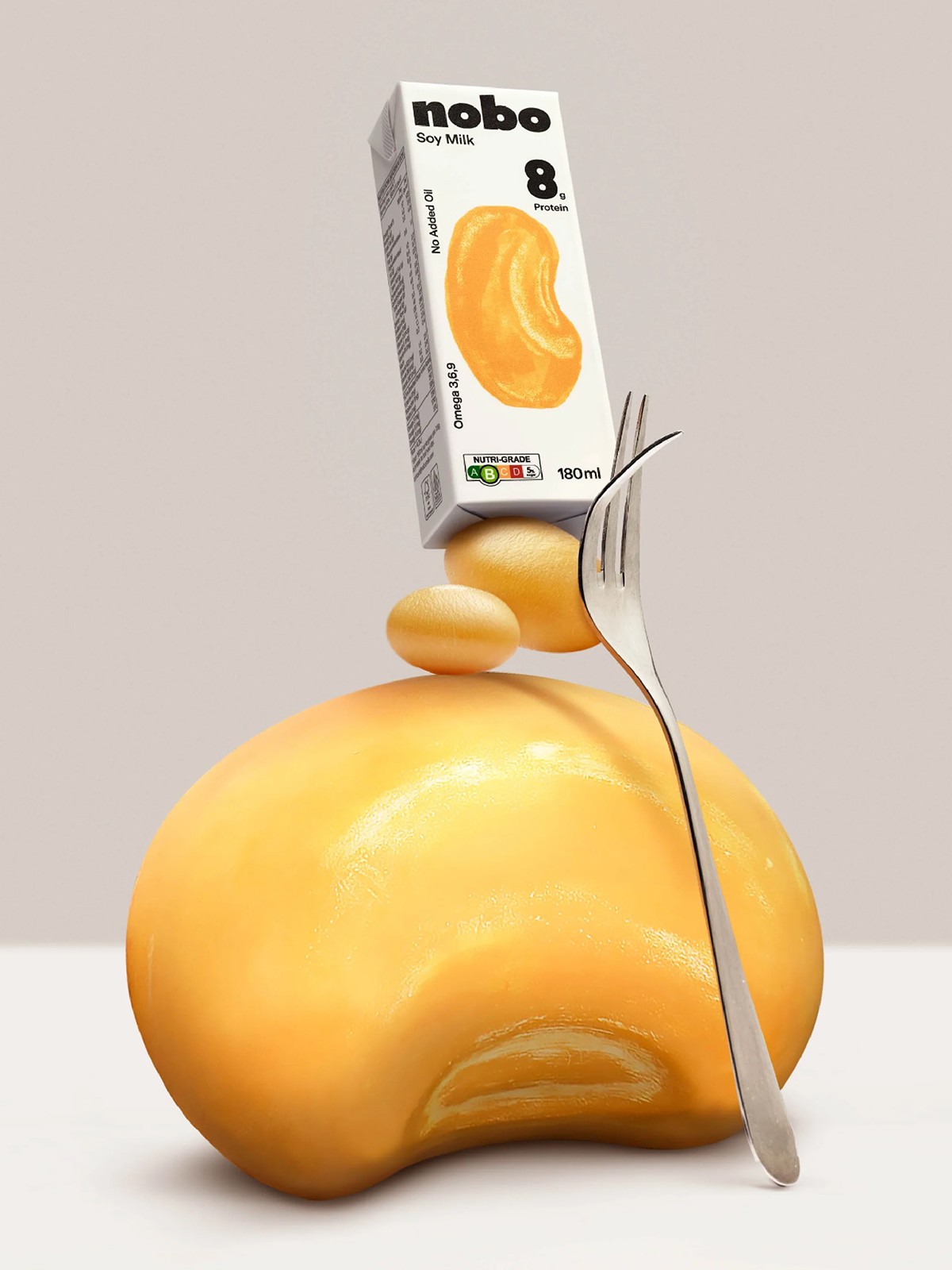 NOBO aims to be a category disruptor from the usual soy milk market. From a functional product to a cultural brand. Built on honesty, truth and unfiltered personality, the brand rejects traditional health messaging and instead embraces simplicity, humor, and visual boldness. An icon for its iconic taste.